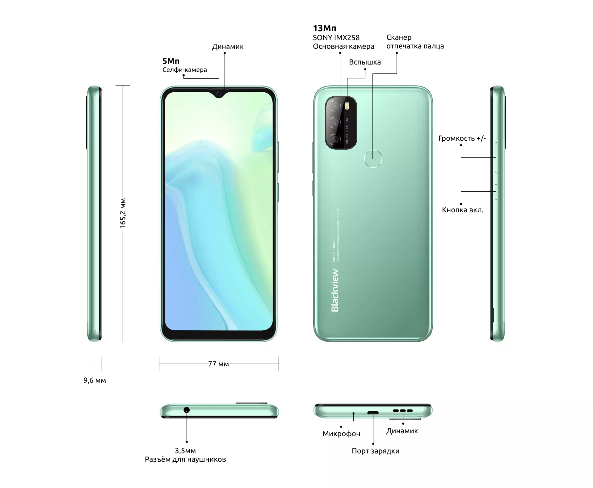 • 165.2*77*9.6мм